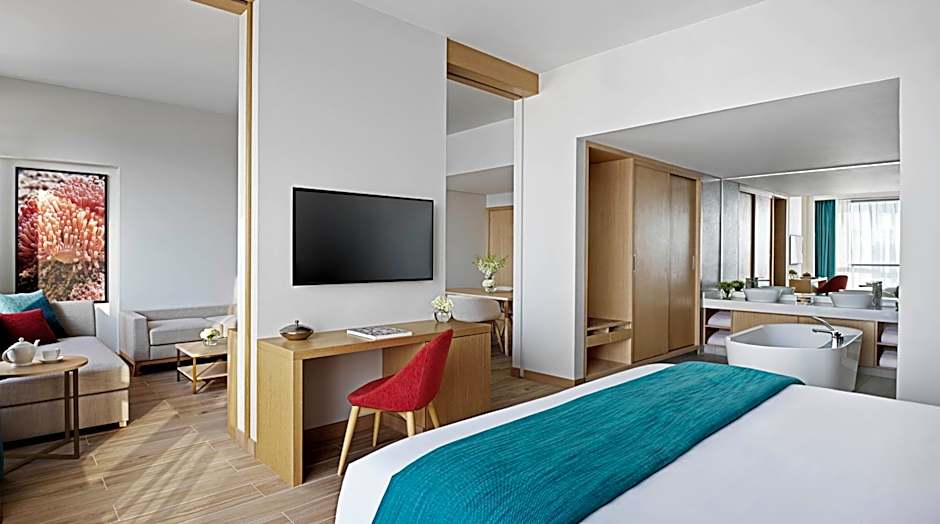 Dining options put a sleek spin on every meal. Pele Social Hub offers a modern ambiance with American and Middle Eastern flavors, while Pele Pool Bar keeps the same stylish vibe for poolside bites and drinks. The Pantry by Avani rounds out the on-site lineup with American and Middle Eastern fare, perfect for a quick bite or a relaxed sit-down plate.